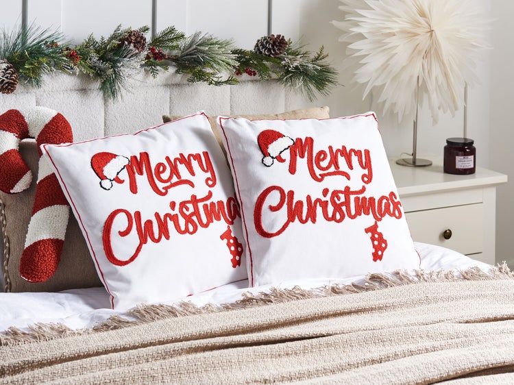 Dekokissen 2er Set PIZZELLE Baumwolle 45 x 45 cm Cremeweiß Weihnachtsmotiv