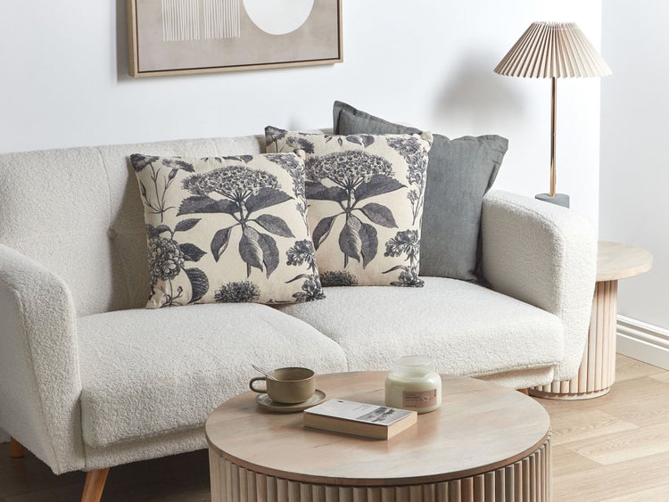 Dekokissen 2er Set ROSEMARY Baumwolle 45 x 45 cm Grau Blumenmuster