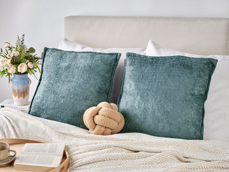 Zwei quadratische, einfarbige Sofakissen mit Biesen. Mit diesen beiden großen Zierkissen ist Ihnen ein gemütlicher, dennoch anziehender Look in Ihren Wohnbereichen gewiss. Beide Kissen verfügen über jacquardgewebte Bezüge aus langlebigen Baumwoll- und Viskosefasern. Die Kissenhüllen zeichnen sich mit einer hochwertigen Verarbeitung aus und sind mit versteckten Reißverschlüssen sowie dekorativen Biesen bestückt. Dank der kräftigen Farbwahl eignen sich die Sofakissen hervorragend, um Ihrer Einrichtung ein frisches, neues Gefühl zu verleihen. Details: Typ Dekokissen. Farbe: Blau. Material: Stoff. Material: Baumwolle. Zusätzliches Material: Viskose. Füllmaterial: Polyester. Zusammenstellung: 51% Baumwolle. Form: Quadratisch. Handgefertigt: Nein. Muster: Ohne Muster. Abmessungen: Tiefe: 50 cm. Breite: 50 cm. Höhe: 5 cm. Füllgewicht: 0.45 kg. Gewicht: 0.8 kg. .Sie kaufen: 2 x Zierkissen. Produktvorteile: Wohnliches Ambiente passend zu jedem Einrichtungsstil, Wunderbar geeignet für Schlaf- und Wohnbereich, Ein einzigartiger Hingucker, Qualitativ hochwertiges Material, Abnehmbare Bezüge. Montage: Benötigt keine Montage. Pflegeanleitung: Baumwolle: 1.Nur punktuell reinigen. 2.Nicht im Wäschetrockner trocknen. Nicht bügeln.