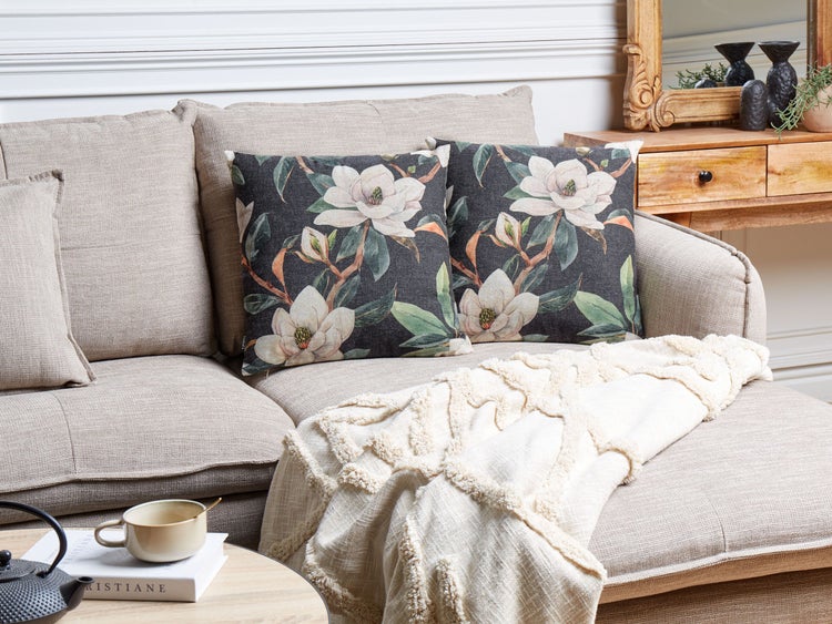 Dekokissen 2er Set ZAHRIYE 45 x 45 cm Schwarz Blumenmuster