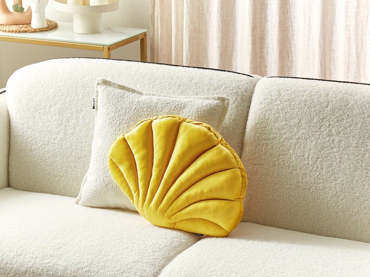 Modernes, gelbes Muschel-Kissen aus geschmeidigem Samtstoff. Dieses dekorative Kissen lässt mit seinem einzigartigen Muschel-Design eine Meeresbrise in Ihren vier Wänden direkt aufziehen. Es verzaubert nicht nur mit seinem hochwertigen Samtbezug und detailreicher Verarbeitung, sondern auch mit seiner leuchtenden Farbwahl, die jeden Wohnraum sofort belebt und jedes Herz gleich höher schlagen lässt. Zudem ist das Sofakissen mit einer angenehm weichen Füllung aus PP-Baumwolle ausgestattet. Vom Wohn- bis zum Schlafzimmer und Essbereich – dieses Samtkissen verspricht für einen gemütlichen und verspielten Touch in jedem Raum zu sorgen. Details: Typ Dekokissen. Farbe: Gelb. Material: Stoff. Material: Samtstoff. Füllmaterial: Polypropylen. Zusammenstellung: 100% Polyester. Form: Unregelmässig. Handgefertigt: Nein. Muster: Ohne Muster. Abmessungen: Tiefe: 35 cm. Breite: 47 cm. Höhe: 6 cm. Füllgewicht: 0.3 kg. Gewicht: 0.3 kg. .Sie kaufen: 1 x Zierkissen. Produktvorteile: Gemütlich und bequem, Ein einzigartiger Hingucker, Wunderbar geeignet für Schlaf- und Wohnbereich, Verleiht jedem Raum eine einzigartige Note, Seidenweicher, geschmeidiger Stoff. Montage: Benötigt keine Montage. Zusatzinformationen: Das Kissen ist vakuumverpackt. Nehmen Sie Ihr Kissen aus der Verpackung heraus und lassen Sie es 24 Stunden lang liegen, bis es seine volle Dichte erreicht. Bitte beachten Sie, dass Samtstoff unter verschiedenen Lichtverhältnissen eine andere Optik haben kann – das Material schimmert bei Tageslicht stärker und wirkt bei künstlicher Beleuchtung in Innenräumen eher gedämpft. Aufgrund der glatten, hochdichten Struktur des Gewebes kann sein Farbton auch variieren, wenn man mit der Hand in verschiedene Richtungen und Winkel über den Stoff fährt. Um den Farbton auszugleichen und Druckstellen zu vermeiden, sollte der Webstoff sanft mit einer offenen Handfläche in eine Richtung gestrichen, mit einem feuchten Tuch abgewischt oder einem Dampfbügeleisen gebügelt werden. Pflegeanleitung: Samtstoff: 1.Nur von Hand, mit kaltem Wasser und milden Reinigungsmitteln waschen. 2.Bitte nicht im Trockner trocknen und auch nicht bügeln.