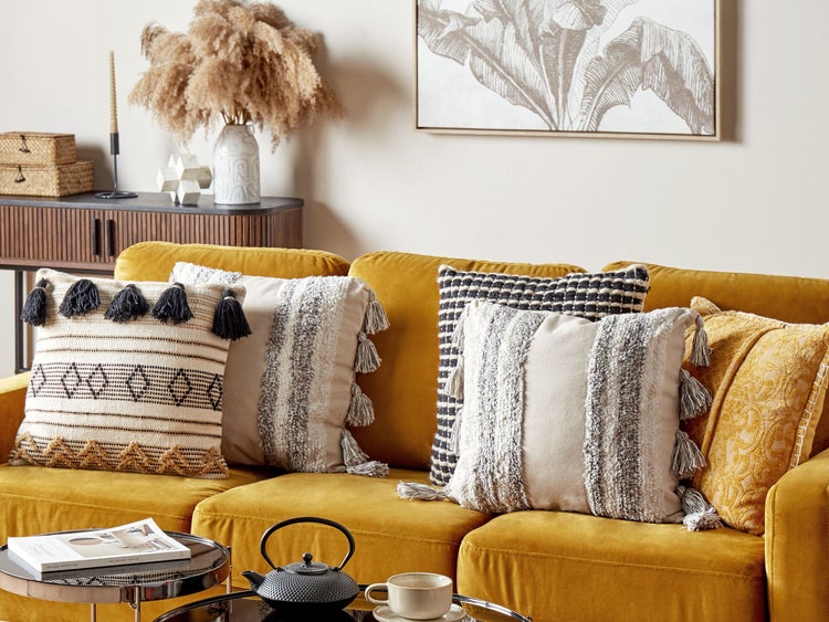 Gestreiftes Boho-Kissen mit Fransen. Dieses Kissen mit Streifenmuster und Fransen verleiht Ihrem Interieur einen Hauch von Boho und Vintage-Stil. Dank seines Designs ist das Kissen eine stilvolle und praktische Ergänzung für jeden Raum. Das Kissen aus umweltfreundlicher Baumwolle ist dick gefüllt und sorgt für absoluten Komfort. Details: Typ Dekokissen. Farbe: Grau. Material: Stoff. Material: Baumwolle. Füllmaterial: Polyester. Zusammenstellung: 100% Baumwolle. Form: Quadratisch. Handgefertigt: Nein. Muster: Streifenmuster. Abmessungen: Tiefe: 45 cm. Breite: 45 cm. Höhe: 10 cm. Füllgewicht: 0.45 kg. Gewicht: 0.9 kg. .Sie kaufen: 1 x Zierkissen. Produktvorteile: Abnehmbarer Bezug, Dicke Polsterung für grössten Komfort, Wunderbar geeignet für Schlaf- und Wohnbereich, Modernes Design, Hohe Qualität. Montage: Benötigt keine Montage. Pflegeanleitung: Baumwolle: 1.Nur punktuell reinigen. 2.Nicht im Wäschetrockner trocknen. Nicht bügeln.