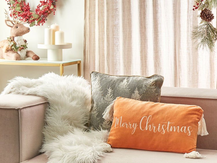 Dekokissen LITHOPS Samtstoff 30 x 50 cm Orange Weihnachtsmotiv