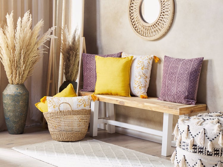 Weiches, rosafarbenes Zierkissen mit geometrischem Motiv. Mit diesem Stoffkssen werden Sie Ihre Einrichtung sicherlich aufwerten können. Plazieren Sie das Kissen auf dem Sofa, Sessel oder Bett und kombinieren Sie es mit anderen samtigen Accessoires. Die Vorderseite des Sofakissens ist aus hochwertigem Samt gefertigt und die Rückseite der Kissenhülle besteht aus strapazierfähiger Baumwolle. Die Materialien fühlen sich nicht nur angenehm an, sondern sind auch leicht zu reinigen, da der Bezug mit einem Reißverschluss auf der Rückseite ausgestattet ist. Das auffällige, geometrische Muster ist einzigartig, da es in einem Blockdruckverfahren hergestellt wurde. Details: Typ Dekokissen. Farbe: Rosa. Material: Stoff. Material: Samtstoff. Zusätzliches Material: Baumwolle. Füllmaterial: Polyester. Zusammenstellung: 100% Baumwolle. Form: Quadratisch. Handgefertigt: Ja. Muster: Geometrisches Muster. Abmessungen: Tiefe: 45 cm. Breite: 45 cm. Höhe: 10 cm. Füllgewicht: 0.45 kg. Gewicht: 0.6 kg. .Sie kaufen: 1 x Zierkissen. Produktvorteile: Abnehmbarer Bezug, Handgefertigtes Blockdruckmuster, Herrlich weich, Wunderbar geeignet für Schlaf- und Wohnbereich, Seidenweicher, geschmeidiger Stoff, Besonders pflegeleicht und langlebig. Montage: Benötigt keine Montage. Zusatzinformationen: Das Kissen ist vakuumverpackt. Nehmen Sie Ihr Kissen aus der Verpackung heraus und lassen Sie es 24 Stunden lang liegen, bis es seine volle Dichte erreicht. Bitte beachten Sie, dass Samtstoff unter verschiedenen Lichtverhältnissen eine andere Optik haben kann – das Material schimmert bei Tageslicht stärker und wirkt bei künstlicher Beleuchtung in Innenräumen eher gedämpft. Aufgrund der glatten, hochdichten Struktur des Gewebes kann sein Farbton auch variieren, wenn man mit der Hand in verschiedene Richtungen und Winkel über den Stoff fährt. Um den Farbton auszugleichen und Druckstellen zu vermeiden, sollte der Webstoff sanft mit einer offenen Handfläche in eine Richtung gestrichen, mit einem feuchten Tuch abgewischt oder einem Dampfbügeleisen gebügelt werden. Pflegeanleitung: Samtstoff: 1.Von Hand oder mit einem Feinwäsche-Programm bei max. 30°C waschen, wenn auf dem Etikett keine weiteren Hinweise des Herstellers gegeben sind. 2.Wenn auf dem Etikett nicht anders angegeben, bitte nicht im Trockner trocknen und auch nicht bügeln.