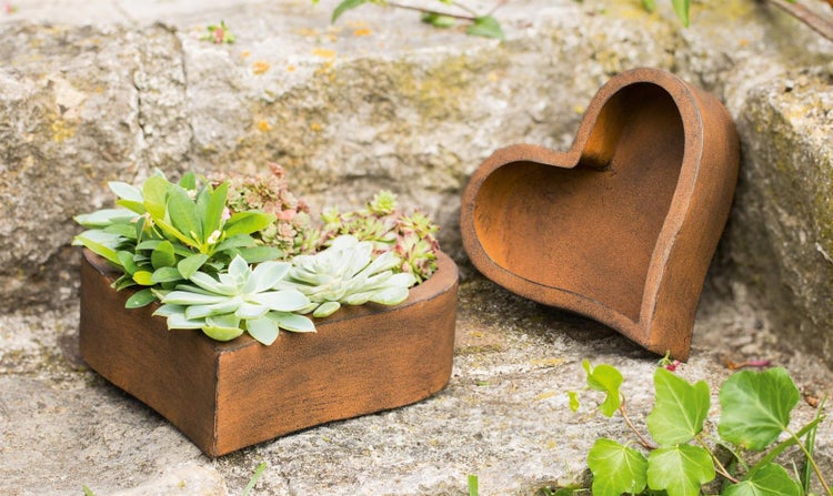 Dekoleidenschaft 2x Pflanzer Herz aus Metall in Rostoptik, Blumentopf für Draußen, Pflanzschale, Gartendeko