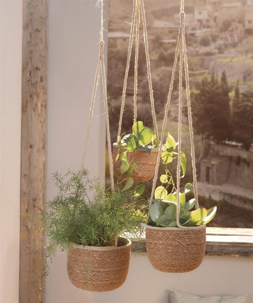 Dekoleidenschaft 3x Pflanzenampel Terra aus Seegras, braun, Blumenampel, Hängeampel