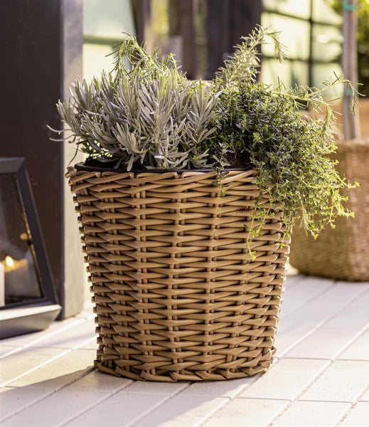 Dekoleidenschaft Übertopf Polyrattan rund, Ø 32 cm, wetterfest, Blumentopf für Draußen, Pflanztopf, Pflanzer