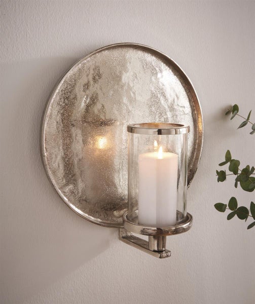 Dekoleidenschaft Wandkerzenhalter Noble, rund, aus Aluminium in Antik Optik, silber, Windlicht, Kerzenleuchter, Wanddeko, Kerzenwandhalter, Wandleuchter