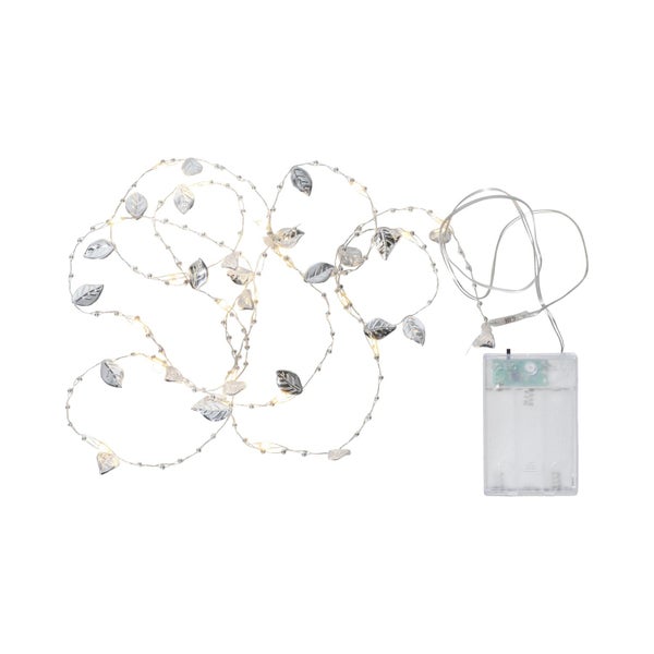 Dekolichterkette ,Leaf', Batterien +Timer, silber, 20 Tautropfen LEDs und Blätter und Perlen, warmweiß, L 200cm