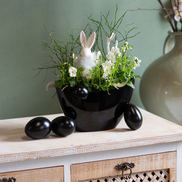 Elegante Dekoration für jeden Anlass Diese dekorative Pflanzschale in zeitloser ovaler Form ist ein einzigartiger Hingucker für Ihr Zuhause. Die hohe Form des Schiffchens verleiht ihm eine außergewöhnliche Eleganz und macht es ideal für stilvolle Tischdekorationen, Fensterbänke oder Regale. Ob für den Alltag, festliche Anlässe oder als außergewöhnliches Dekorationselement – dieses Pflanzschiffchen passt perfekt. Vielseitig einsetzbar und stilvoll kombinierbar Nutzen Sie die Pflanzschale, um kreative Gestecke aus pflegeleichten, dekorativen Kunstblumen oder täuschend echt wirkenden Trockenblumen zu gestalten. Auch als kleines Kräuterschiffchen für die Küche oder gefüllt mit saisonalen Akzenten wie täuschend echter Blätterdeko und glanzvollen Ornamenten können Sie die Schale herrlich in Szene setzen. Kombiniert mit weiteren Artikeln von uns, wie formschönen Kerzenhaltern, Holztabletts oder filigranen Dekorationsfiguren, erschaffen Sie ein harmonisches Gesamtbild für Ihre Wohnung oder Veranstaltung. Praktisch und langlebig Das aus robustem Kunststoff gefertigte Pflanzgefäß ist leicht zu reinigen und äußerst langlebig. Dank der kompakten Form ist das Bepflanzen kinderleicht. Für eine individuelle Gestaltung legen Sie den Boden mit Blähton aus, um eine perfekte Basis für Ihre Deko oder Kräuter zu schaffen. Ideales Geschenk für besondere Momente Ob als liebevolles Mitbringsel, stilvolles Geschenk oder Deko-Idee – diese Pflanzschale zaubert ein Lächeln auf die Gesichter Ihrer Liebsten. Sie ist der perfekte Begleiter für Geburtstage, Ostern oder als Überraschung für Hobby-Dekorateure. Anb.Nr.: 16241 EAN: 4067555162412