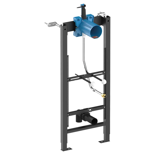- HinweisMontageelement für Urinal zur Vorwandmontage, mit vormontiertem Gestell aus pulverbeschichtetem Stahl, höhenverstellbar durch Teleskop-Gestell, Mittenabstand einstellbar 95–280 mm, geeignet für Wandaufbau 13–120 mm. Lieferung inkl. Unterputzkasten und Metalldübeln. Abfluss Ø50 mit Steckmuffe, Spülrohr mit 1/2" Messingverschraubung für Schlauchanschluss. Kompatibel mit elektrischen und batteriebetriebenen Armaturen. Betätigungplatten separat bestellen (Artikelnummern 430006, 430016, 430036, 778700, 778707).