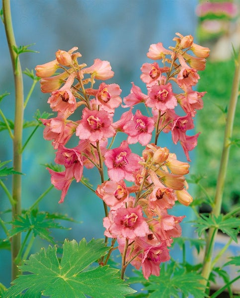 Im Staudenbeet, im Cottage- oder Bauerngarten setzt ‘Pink Sensation’ romantische Akzente, eignet sich als Solitär genauso wie für die Gruppenpflanzung und liefert zudem erstklassige Schnittblumen für die Vase. In großen Gefäßen lässt sich der Rittersporn auch als Kübelpflanze auf Terrasse oder im Vorgarten kultivieren, sofern die Versorgung mit Nährstoffen und gleichmäßiger Feuchte gesichert ist. Ein sonniger, luftiger Standort fördert standfeste Blütenstiele und üppige Knospenbildung; der Boden sollte humos, nährstoffreich, gut drainiert und gleichmäßig feucht sein, Staunässe wird gemieden. Eine Frühjahrsdüngung, das Ausputzen verwelkter Blütenstände und ein Rückschnitt nach der ersten Blüte unterstützen Vitalität und Blühfreude. Der mehrjährige, winterharte Rittersporn zieht im Winter vollständig ein und treibt im Frühjahr zuverlässig wieder aus; ein leichter Winterschutz im Wurzelbereich durch Mulch ist auf schweren oder sehr offenen Lagen sinnvoll.