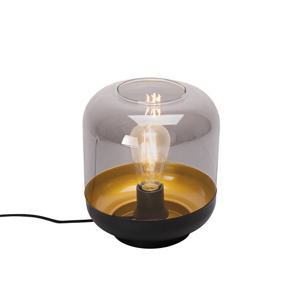 Design-Tischlampe schwarz mit Gold und Rauchglas – Kyan