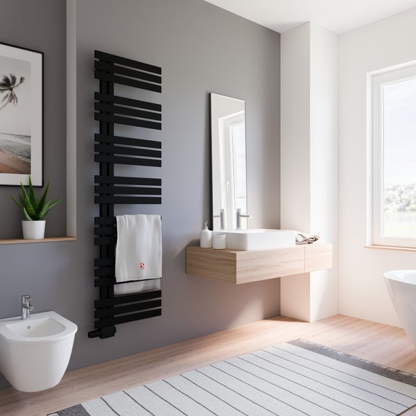 Mit seinen klaren Linien und der edlen, Pulverbeschichtung fügt sich der Heizkörper harmonisch in zeitgemäße Wohn- und Badkonzepte ein. Die vertikale Ausrichtung spart Platz und wirkt dabei stilvoll dezent.
