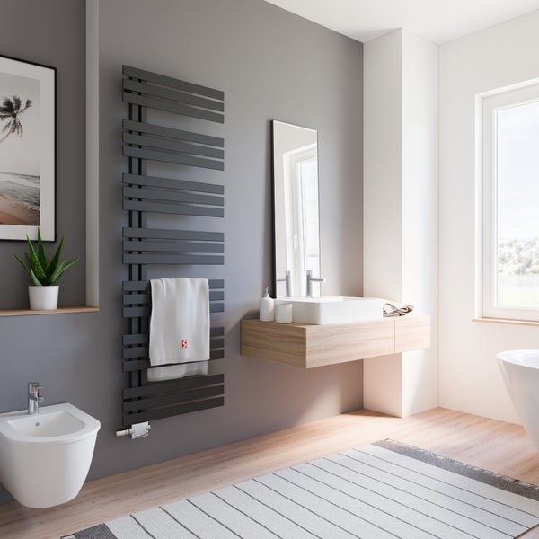 Mit seinen klaren Linien und der edlen, Pulverbeschichtung fügt sich der Heizkörper harmonisch in zeitgemäße Wohn- und Badkonzepte ein. Die vertikale Ausrichtung spart Platz und wirkt dabei stilvoll dezent.