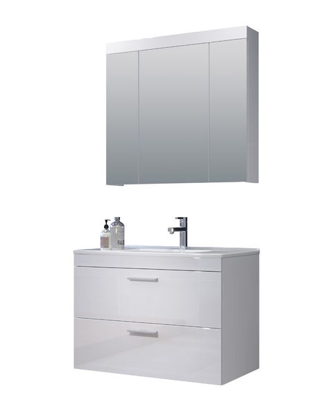 Devon Badmöbelset C mit Bad Spiegelschrank weiß, weiß Hochglanz. 80 X 47 X 190 cm