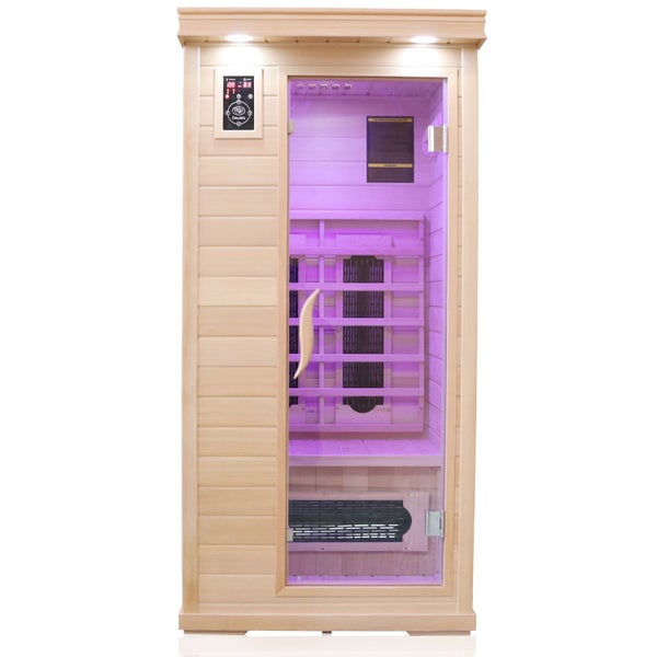 Tauchen Sie ein in pure Entspannung mit der Windsor Infrarotkabine. Diese luxuriöse Saunakabine bietet Ihnen einzigartige Funktionen und hochwertige Materialien für ein unvergleichliches Wellness-Erlebnis. Das Hemlock Tannenholz und die stabile Elementbauweise gewährleisten Langlebigkeit und eine einfache Montage. Durch die hohe Qualität des Holzes und seine optimale Wärmeisolierung bleibt die Kabine energieeffizient und bietet Ihnen eine angenehme Umgebung zum Entspannen. Die Infrarotstrahler sind strategisch platziert und ermöglichen eine schnelle und effiziente Erwärmung der Kabine. Die hochwertigen Keramikstrahler und der Karbon-Flächenstrahler im Boden sorgen für eine gleichmäßige Wärmeverteilung und eine tiefere Wirkung auf Ihren Körper. Stellen Sie die Temperatur zwischen 30°C und 65°C ein und genießen Sie eine individuell angepasste Saunatemperatur. Mit der eingebauten Doppel-Steuereinheit haben Sie die volle Kontrolle über Ihre Saunasitzung. Sie können die Beleuchtung, das HiFi-System, die Temperatur und den Timer zentral steuern. Über Bluetooth, SD, FM oder USB können Sie Ihre Lieblingsmusik abspielen und sich von einem klaren und kraftvollen Sound verwöhnen lassen. Die LED-Farblichttherapie bietet Ihnen die Möglichkeit, die Atmosphäre in der Kabine anzupassen. Wählen Sie Ihre bevorzugte Farbe oder lassen Sie die Farben automatisch wechseln, um eine beruhigende und stimmungsaufhellende Wirkung zu erzielen. Die separate Innen- und Außenbeleuchtung sorgt für eine angenehme Atmosphäre während Ihrer Saunasitzung. Mit der Windsor Infrarotkabine verwandeln Sie Ihr Zuhause in eine persönliche Wellness-Oase. Entspannen Sie sich, verbessern Sie Ihr Wohlbefinden und gönnen Sie sich den Luxus einer hochwertigen Saunakabine. Bestellen Sie noch heute und genießen Sie die Vorteile einer eigenen Infrarotsauna.