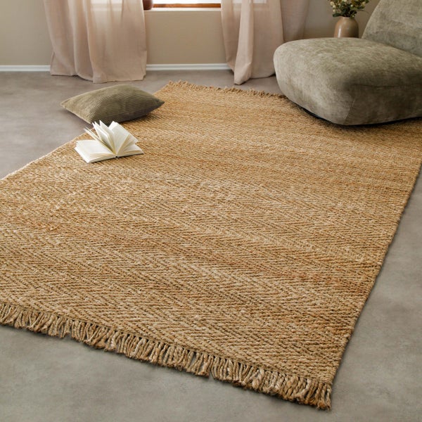 Dhurry bringt Erdung – und Muster. Ein Klassiker aus Jute mit klarer Linie: Die markante Fischgrät-Struktur zieht sich über die gesamte Fläche, kraftvoll, aber nie laut. Kein Print, keine Farbe – nur Form, Webbild und das warme Spiel natürlicher Fasern. Und: Dhurry ist mehr als Dekoration. Mit rund 3.300 g/m² bringt er ein spürbares Gewicht auf den Boden. Jeder Teppich wird von Hand gewebt – das verleiht ihm Substanz, Struktur und diese leicht unregelmäßige Schönheit, die keine Maschine hinbekommt. Die handgeknüpften Fransen setzen einen weichen Kontrapunkt zur kraftvollen Webstruktur. Der Flor liegt bei 12 mm – griffig unter den Füßen, angenehm natürlich im Raum. Natürlich GoodWeave-zertifiziert und frei von synthetischen Zusätzen. Für Menschen, die Natur nicht nur inszenieren, sondern leben wollen.