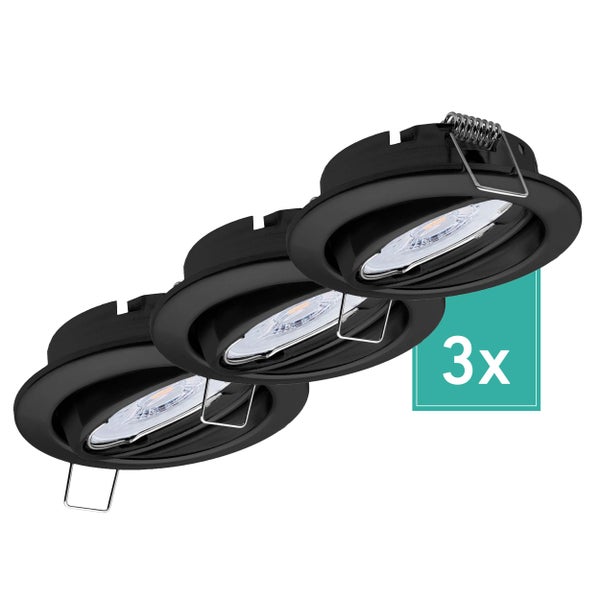 Dijon Deckenspots schwenkbar 4000K 380lm 3er Set 230V LED Modul für Wohnbereich neutralweiß Licht Schwarz 68mm Lochmaß Innenbeleuchtung