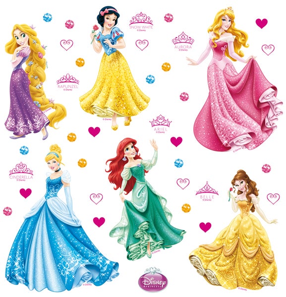 Disney Wandtattoo Prinzessinnen Rosa, Gelb und Blau - 30 x 30 cm - 600212