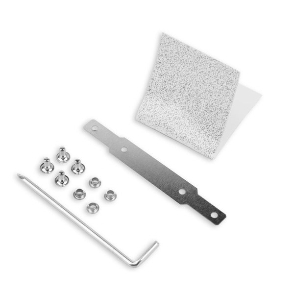 - Im Lieferumfang enthalten1 x Edelstahl-Verbindungsstreifen | 1 x Spezial- Klebestreifen | 1 x Montagesatz (Nieten, Anleitung und Kleinteile)