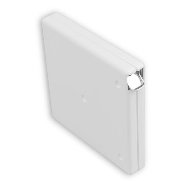 Das Gehäuse besteht aus robustem Kunststoff in weiß, hat ein Außenmaß von 120 x 120 mm und eine Gehäusetiefe von 23 mm – ideal für eine dezente Integration in Deine Wohnumgebung.