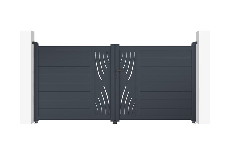 Entscheiden Sie sich für die perfekte Kombination aus Funktionalität und Ästhetik mit unserem Aluminium-Doppelflügeltor VELETA.