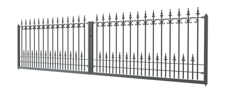 Das Tor Lucca sichert Ihr Grundstück mit Eleganz und Stil. Wie unser gleichnamiges Zaunsystem besticht auch das Hoftor Lucca mit formschönen C-Dekoren und Spitzen in Kugellilienform. Wählen Sie die Beschichtung selbst und verleihen Sie Ihrem Tor so eine individuelle Note!