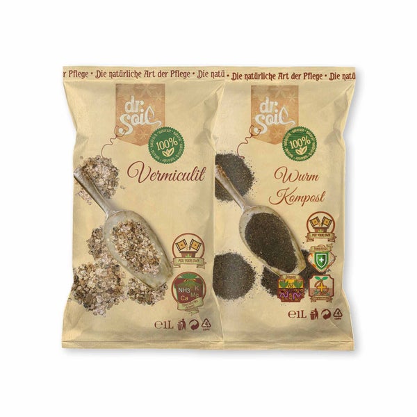 Dr.Soil Pflanzenpflegepaket für Aussaaterde-Mischungen mit Vermikulit und Wurmkompost