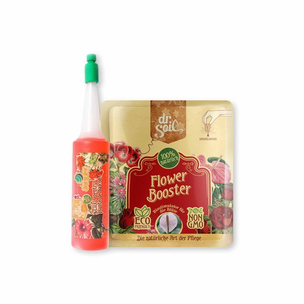 Das Dr.Soil Pflanzenpflegepaket ist die optimale Lösung für Blumenliebhaber und Balkonbesitzer, die ihre Pflanzen mit der bestmöglichen Pflege versorgen möchten. Dieses umfassende Set umfasst einen Balkonpflanzen-Bewässerungszusatz in handlicher Flaschenform sowie eine konzentrierte Biostimulator-Blüten-Monodosis, die speziell für die Herstellung einer 1L Sprühlösung entwickelt wurde.