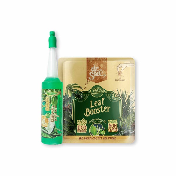 Dr.Soil Pflanzenpflegepaket für die Grünpflanzenpflege mit Bewässerungszusatz für Grünpflanzen in Fläschchenform und konzentrierter Biostimulator-Monodosis für die Blattregeneration für 1L Sprühlösung