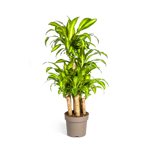 Diese Sorte des Drachenbaums bringt sofort tropische Atmosphäre in Wohn- und Arbeitsräume. Sie ist bekannt für ihre Langlebigkeit, Robustheit und ihre luftreinigenden Eigenschaften. Mit ihrem harmonischen Wuchs und dem satten Grün-Gelb sorgt sie für Frische und Lebendigkeit – ein echter Klassiker unter den großblättrigen Zimmerpflanzen.