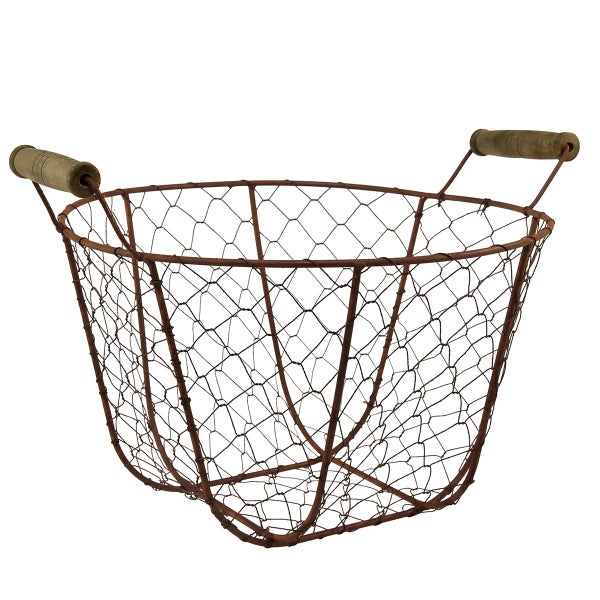 Drahtkorb Vintage rund mit Griff, Rost Deko Korb Ø26,5cm für nostalgische Dekoration