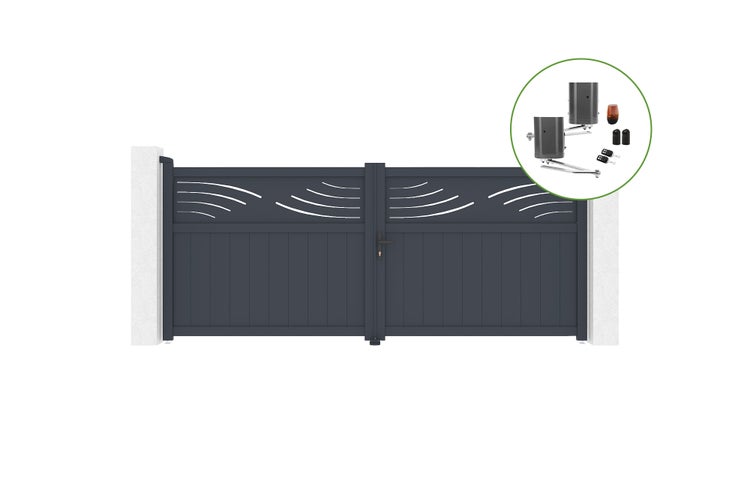 Drehtor 3,4 m HALTI H.140 cm Aluminium + BUNKER B500 Motorisierung