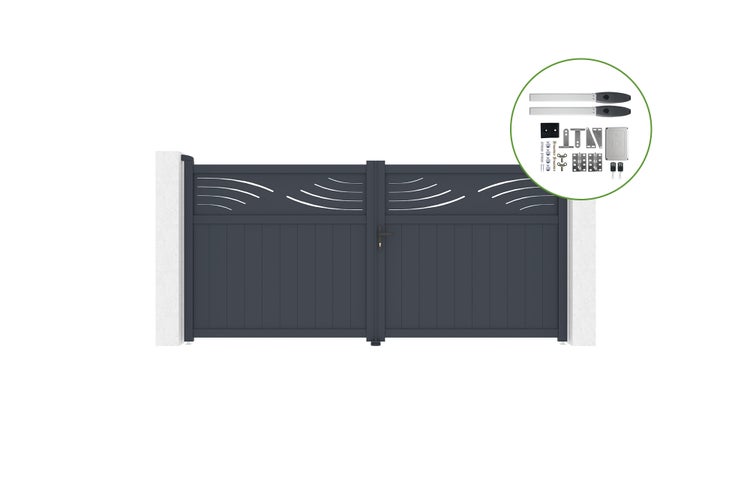 Drehtor 3,4 m HALTI H.160 cm Aluminium + HICKER B200 Motorisierung