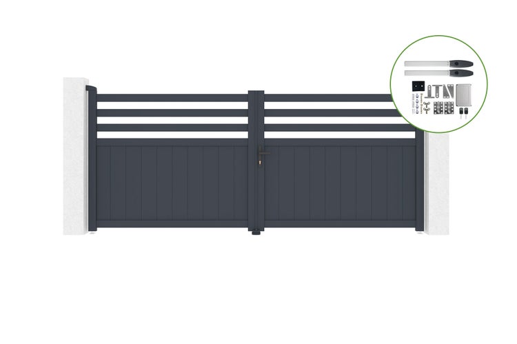 Drehtor 3,4 m NEVIS H.140 cm Aluminium + HICKER B200 Motorisierung