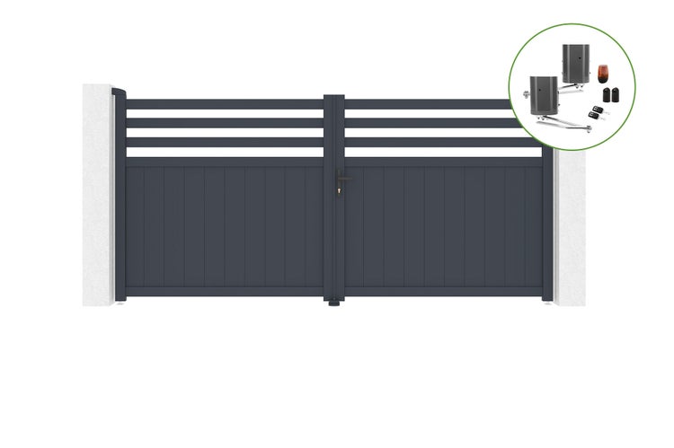 Drehtor 3,4 m NEVIS H.160 cm Aluminium + BUNKER B500 Motorisierung