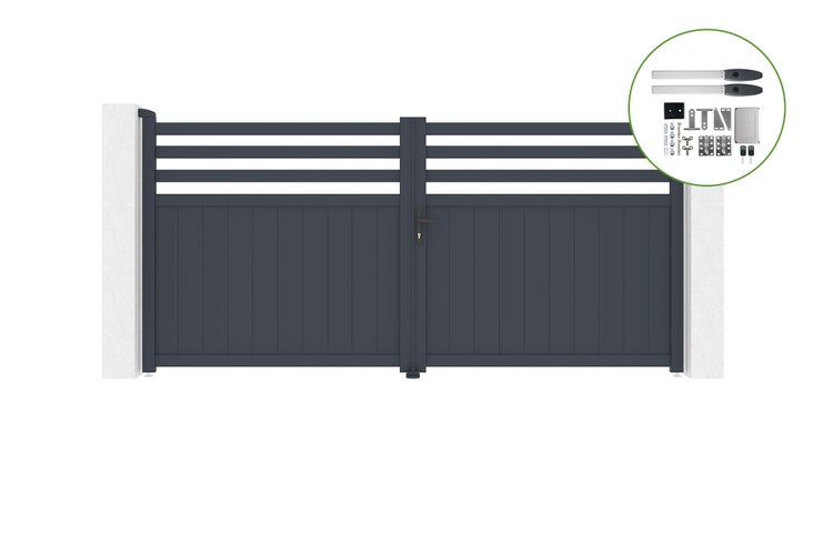 Drehtor 3,4 m NEVIS H.160 cm Aluminium + Motorisierung HICKER B200