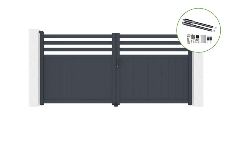 Drehtor 3,4 m NEVIS H.160 cm Aluminium + RANGER B150 Motorisierung
