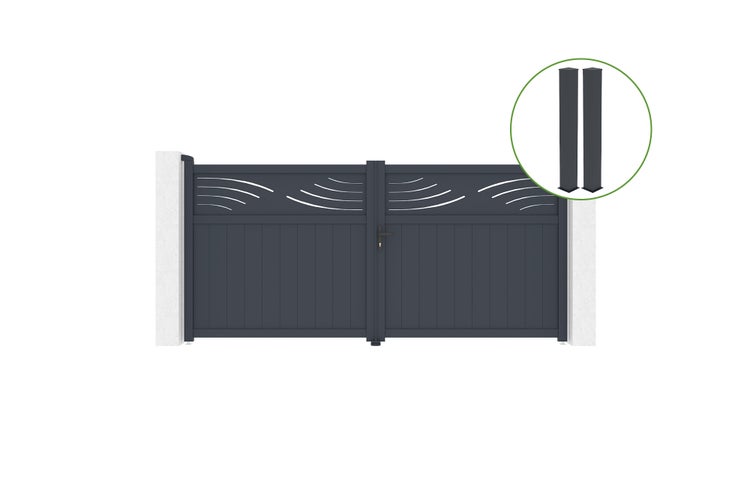 Drehtor 3,4m HALTI H.160cm Aluminium + 2 EIFEL-Pfosten 15x15cm H.190cm GRAU