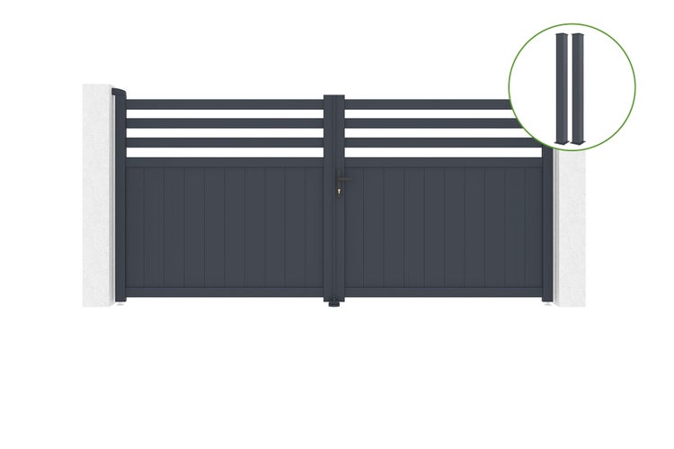 Drehtor 3,4m NEVIS H.160cm Aluminium + 2 EIFEL-Pfosten 15x15cm H.190cm GRAU