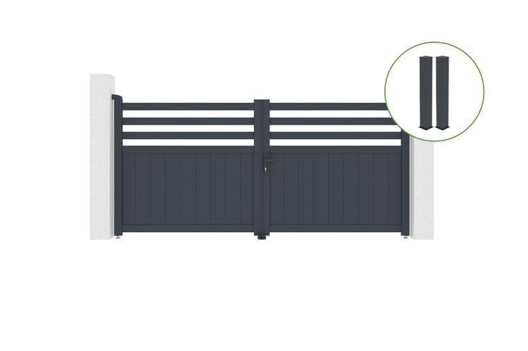 Drehtor 3m NEVIS H.140cm graues Aluminium + 2 Pfosten 20x20cm H.166cm