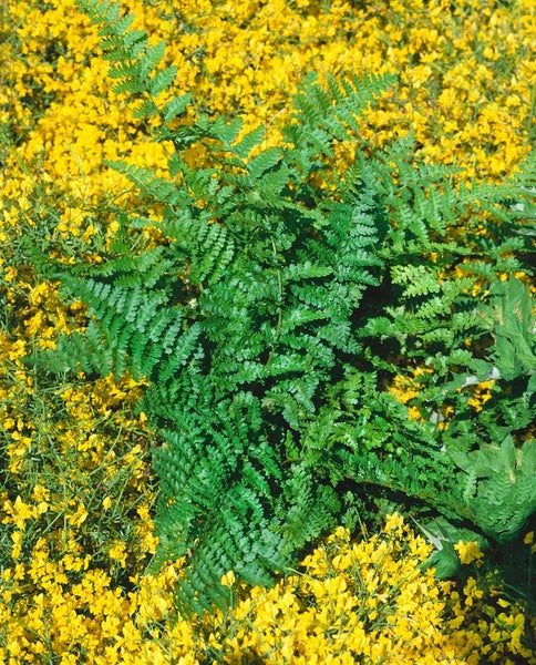 Am besten gedeiht der Goldschuppenfarn in humoser, lockerer und gleichmäßig frischer bis leicht feuchter Erde, die gut durchlässig ist und weder austrocknet noch zu Staunässe neigt. Ein Standort im lichten Schatten bis Schatten, gern windgeschützt und mit sommerlicher Bodenfeuchte, unterstützt den vitalen Wuchs und die langlebige, dichte Horstbildung. Leichter, schwach saurer bis neutraler Boden ist ideal; eine jährliche Mulchgabe aus Laub- oder Rindenhumus fördert die Bodenstruktur. Pflegeleicht und robust, benötigt Dryopteris affinis nur wenig Aufmerksamkeit: Verwelkte oder angegriffene Altwedel werden im zeitigen Frühjahr bodennah entfernt, damit der neue Austrieb ungestört zur Geltung kommt. Kombiniert mit Funkien, Farnen, Heuchera oder Astilben entsteht ein stimmiges, texturreiches Schattenbild, das Beete, Vorgarten und Teichrand ganzjährig aufwertet und dem Garten eine edle, ruhige Atmosphäre verleiht.