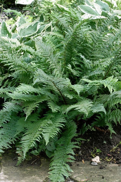 Dryopteris filix-mas ‘Mexico’, der Männliche Wurmfarn, ist eine edle Schattenstaude für strukturreiche Gartenbilder und bringt mit elegant geschwungenen, frischgrünen bis sattgrünen Wedeln eine ruhige, immergrüne Anmutung in schattige Bereiche. Der Zierfarn bildet aufrechte, trichterförmige Horste mit klar gezeichneten, doppelt gefiederten Wedeln, die dem Beet eine feine Textur verleihen und im Jahreslauf lange attraktiv bleiben; in milden Wintern zeigt sich der Gartenstrauch-Charakter halbimmergrün, im Frühjahr treibt er kräftig neu durch. ‘Mexico’ wirkt sowohl als Solitär an halbschattigen bis schattigen Standorten als auch in Gruppenpflanzung unter Gehölzen, am Gehölzrand oder entlang von Wegen und Mauern. Als Kübelpflanze auf der schattigen Terrasse oder im Innenhof setzt dieser Zierfarn ruhige, elegante Akzente und harmoniert hervorragend mit Funkien, Purpurglöckchen, Elfenblumen oder Christrosen. Der Wuchs ist vital, kompakt und standfest, wodurch sich der Gartenstaude-Farn auch für pflegeleichte, naturnahe Gestaltungsideen eignet, etwa am Teichrand oder im schattigen Steingarten. Bevorzugt wird ein humusreicher, gleichmäßig frischer bis feuchter, gut durchlässiger Boden ohne Staunässe; leichte, lockere Substrate mit Laubhumus fördern kräftige Wedel und sattes Grün. Ein windgeschützter Platz erhält die Wedelstruktur, während Morgen- oder Abendsonne das Blattgrün zum Leuchten bringt. Die Pflege ist unkompliziert: abgeknickte oder braun gewordene Wedel werden im späten Winter entfernt, danach treibt der Blütenstrauch-Ersatz zügig neu aus und füllt Beete, Vorgärten und Schattenrabatten zuverlässig mit üppigem Grün. So wird Dryopteris filix-mas ‘Mexico’ zum vielseitigen Gestaltungspartner für schattige Gartenräume.