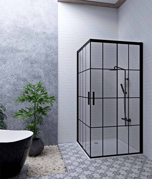 Duschkabine 100x90 Dusche 90x100 Eckdusche Schiebetür Karo Blackline H 190cm