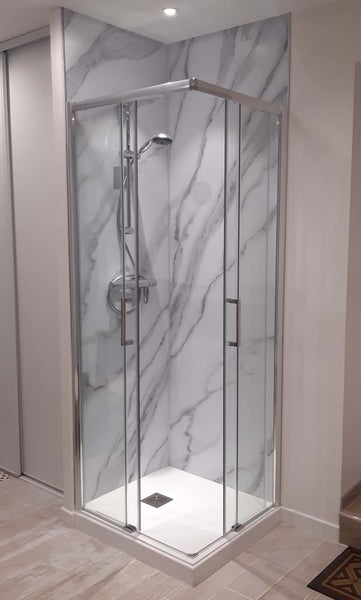 Duschkabine 85 x 80 cm Ecköffnung mit bequemem Einstieg Höhe 200 cm aus gehärtetem Glas - FRASCIO