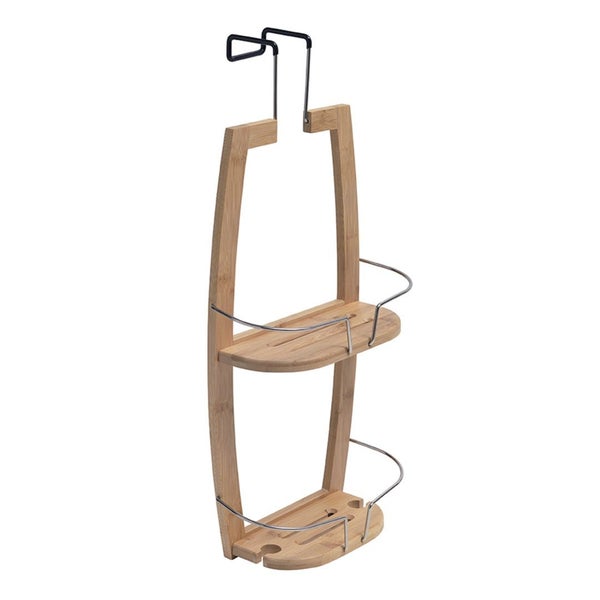 Duschhalter aus Bambusholz mit zwei Fächern. Zum Aufhängen an der Oberkante der Duschkabine. Dieser Aufbewahrungskorb ist nicht für Duschkabinen mit Schiebetüren geeignet