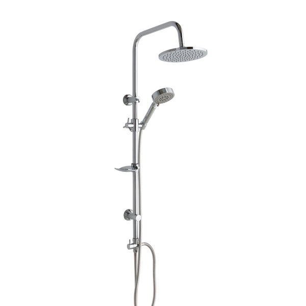 Die Duschsäule mit festem Duschkopf und Handbrause am Schienensystem vereint schlichtes Design und hohe Funktionalität und ist ideal, um das Badezimmer stilvoll zu komplettieren. e Säule ist mit einer feinen Chrombeschichtung versehen, die ihre Eleganz unterstreicht. Der runde Duschkopf aus ABS hat einen Durchmesser von 20 cm und einen schwenkbaren Messinganschluss, während die Handbrause über 5 Funktionen verfügt und einen integrierten Seifenhalter aus ABS besitzt. Die Schiene besteht aus Edelstahl, der Umsteller aus Messing, und der Duschschlauch aus Edelstahl mit Doppelanschluss ist 150 cm lang. Mit dieser Duschsäule wird jede Dusche zu einem entspannenden Erlebnis, das Qualität, Funktionalität und Ästhetik zu einem attraktiven Preis verbindet. Die Säule ist 104 cm hoch, die Handbrause hat einen Durchmesser von 10,2 cm, und alle Komponenten bestehen aus sorgfältig ausgewählten Materialien für Langlebigkeit und Zuverlässigkeit.