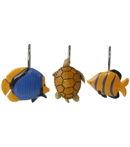 - 12 Duschvorhangringe (6x Leuchtturm und 6x Seestern)