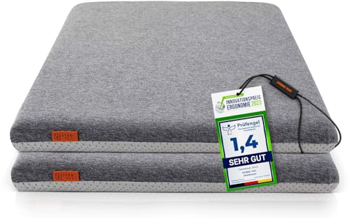 DYNMC you Sitzkissen Stuhl - Stuhlkissen 40x40 - Eckig 2er Set Grau - Test SEHR GUT - Mittelhart H3 - Sitzkissen Bank Memory Schaumstoff - Sitzpolster Stuhl - Stuhlauflage